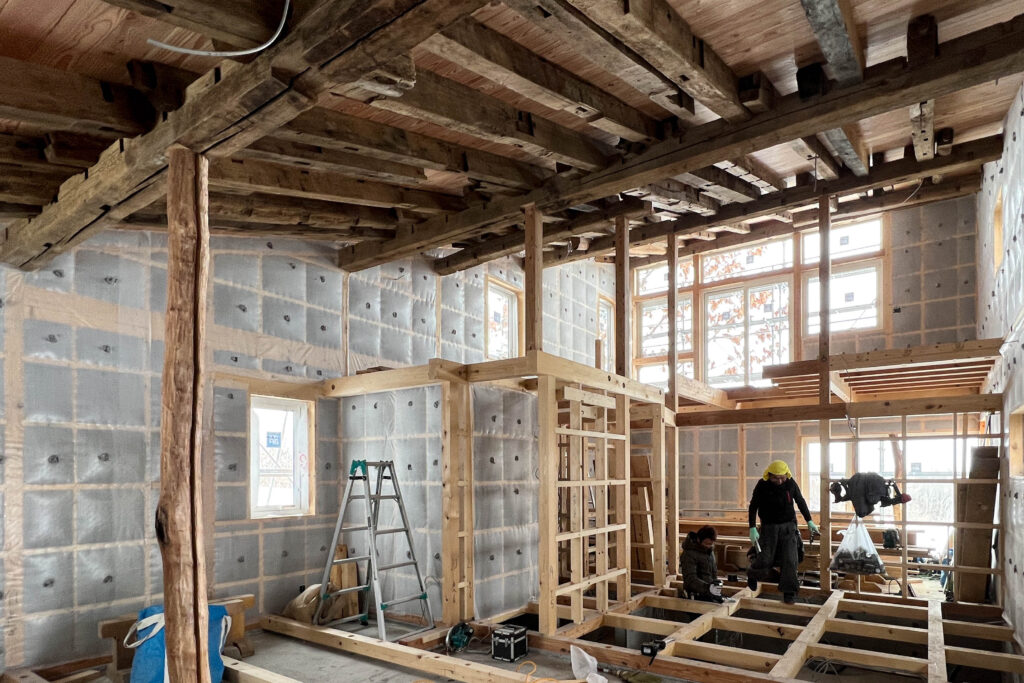 長い年月を経た古材は唯一無二の風格を持っており、可能な限り手を加えずにもう一度構造材として再利用することが、素材に対する敬意であると考えました。
